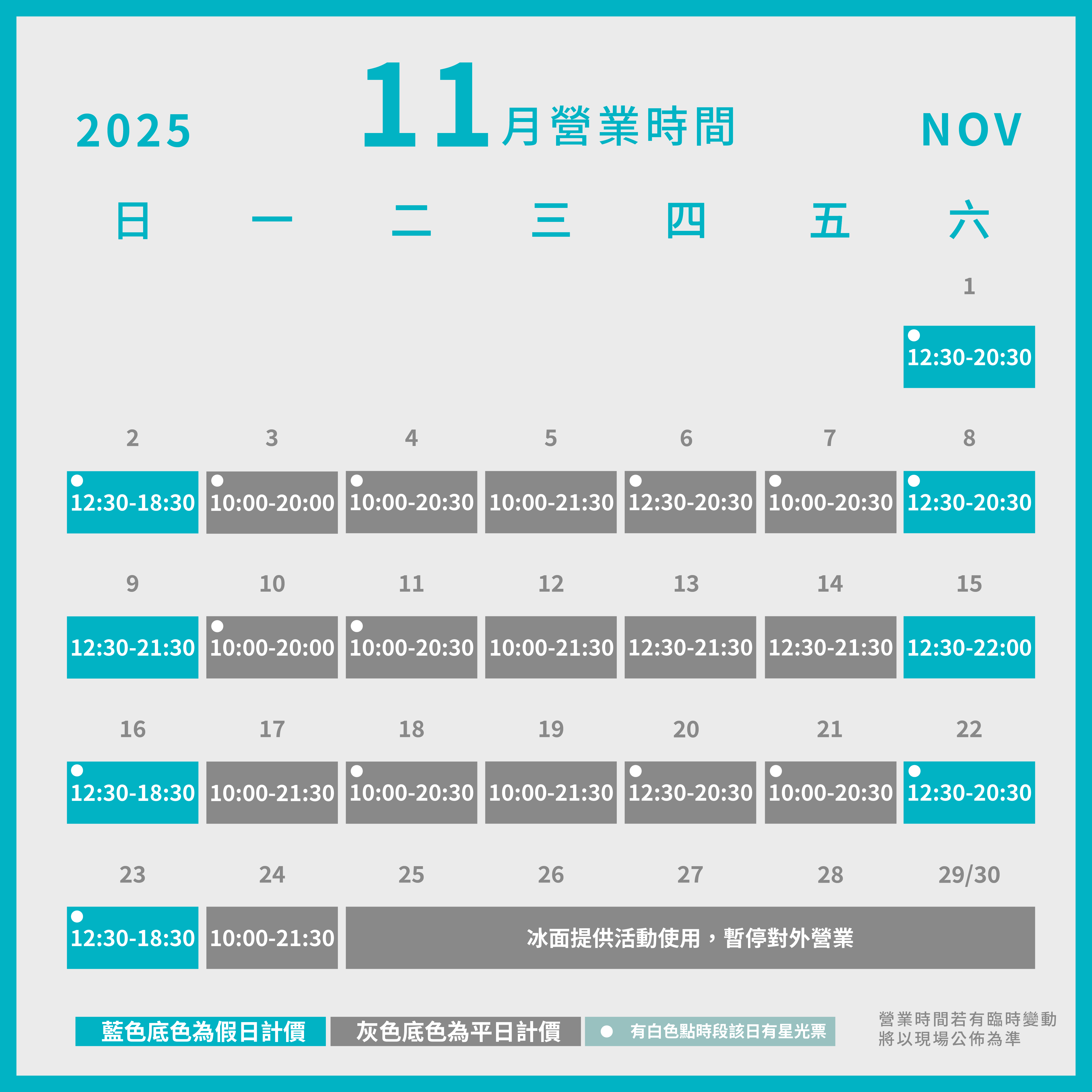 11月營業時段 🌟 𝗢𝗣𝗘𝗡𝗜𝗡𝗚 𝗛𝗢𝗨𝗥𝗦