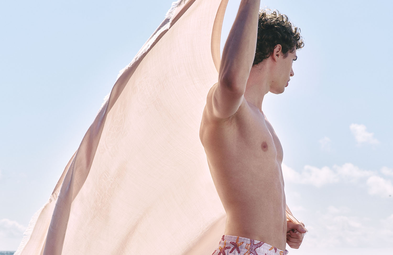 大西洋海風中的白帆,描繪東岸經典夏日畫面。系列首度推出 100% 美麗諾羊毛泳褲,細膩全版烏龜印花低調卻洗鍊;再搭義大利製羊毛與絲綢混紡的 SUBLIME 披肩,讓晚風化作最柔軟的陪伴。