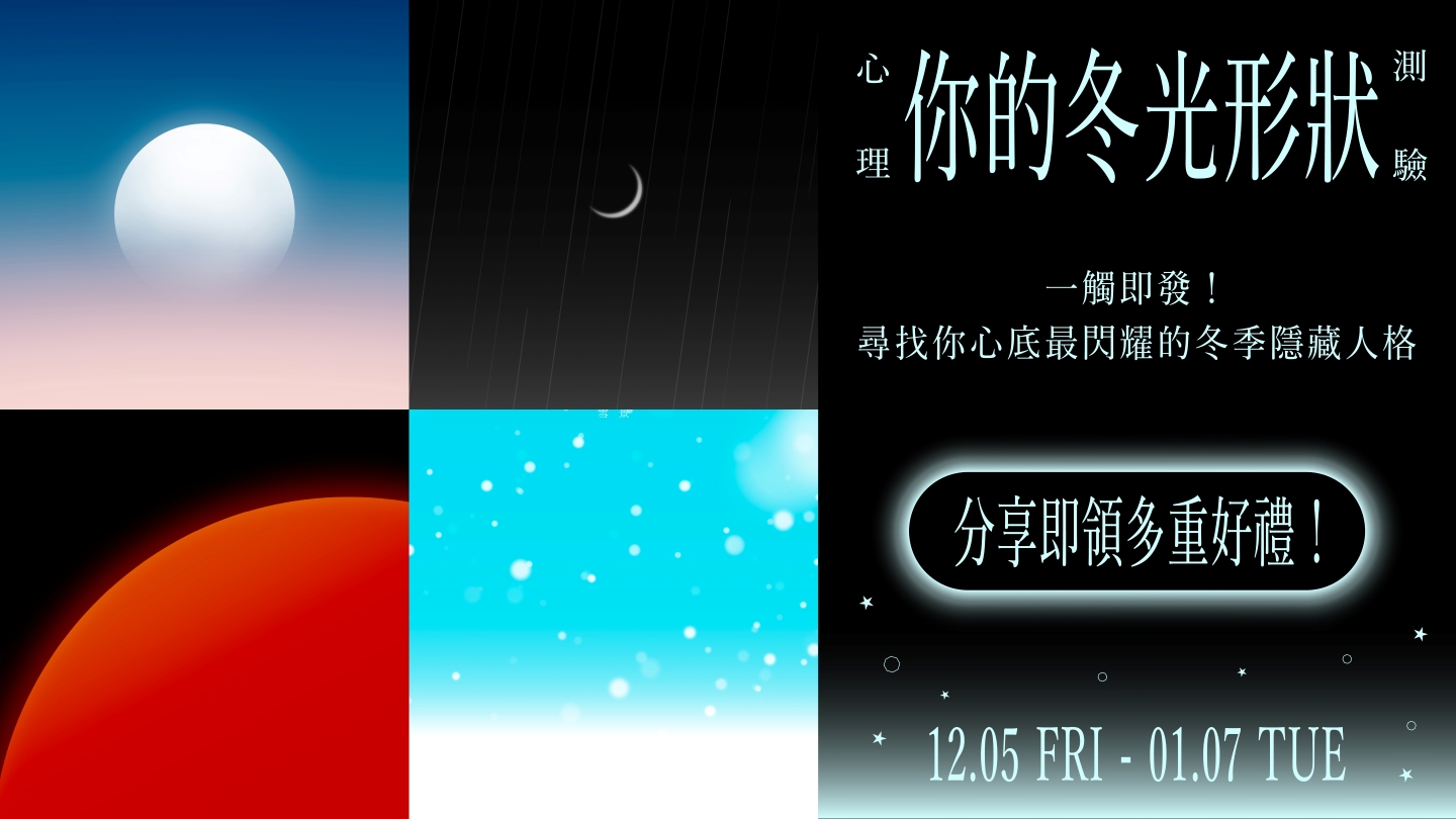 完成心理測驗問答,立即獲得一張專屬於你 「#冬光形狀」 角色卡。